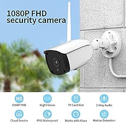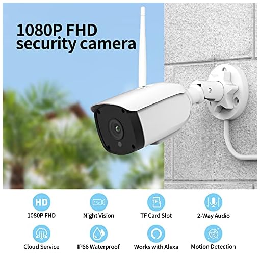 Outdoor Security Camera, 1080P Wireless Camera, IP66 Waterproof Surveillance CCTV Camera with 2-Way Audio, Night Vision, Motion Detection, Outdoor Security Camera Works with Alexa