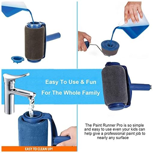 Refillable Paint Roller: Convenient refill model allow you to easy fill paint into the roller, non drip paint roller or mess, keep clean.Do not fill too full. Fill 2/3 full with paint every time is enough.(Water: Paint ≈ 1:10.)