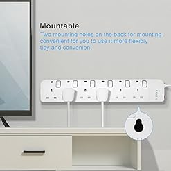 【Space-saving Design and Wall Mounted Plug Extension】— The compact and lightweight design with mounting hole on the back make the extension lead able to fix on the wall and 5 metre length cable is long enough to reach your powered devices. Ideal for charging multiple appliances from distance in a large office or room.