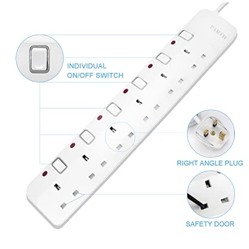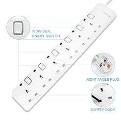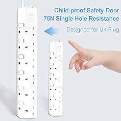 【Surge Protected Extension Lead with Switches】— Power up to 3250 watts (13A/BS1363/A), it provides the power that you need for all of your appliances. Ideal for charging most office and household appliances such as such as printers, televisions, ovens, microwaves, hair dryers, electric toothbrushes and etc. Protected against overvoltage, overcurrent, overload, short-circuiting,surge protection