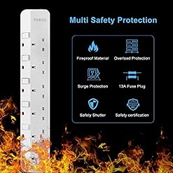 【6 Way Surge Protected Extension Lead 】— Shield your expensive office, computer, household, or home theater electronics against harmful voltage fluctuations, surges, and energy spikes with three-line AC protection