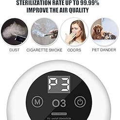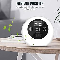 Portable Air Purifier, Ultra-Quiet Ozone Generator, Air Ionizers with LED Display, Antibacterial 99% Deodorizing, Up to 50m³ for Home Office Pets Kitchen – White