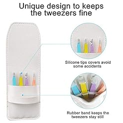 [Cleaning and safety]: The hair removal tweezers tool is equipped with a small leather case, each tweezers has a separate pocket to keep the eyebrow tweezers clean and not so easy to lose, with a silicone tip cover to keep the tweezers safe.