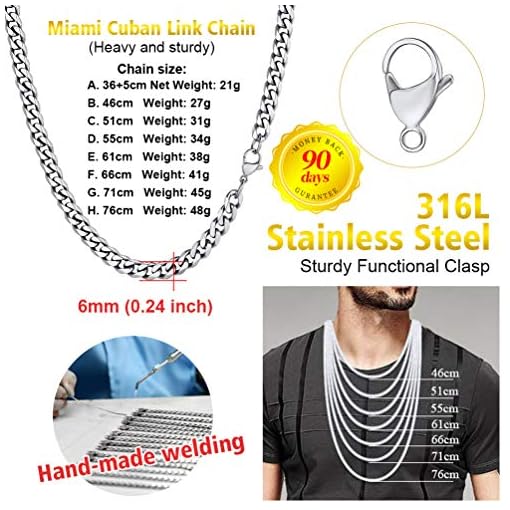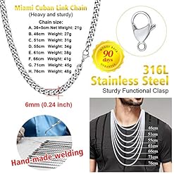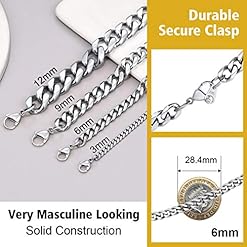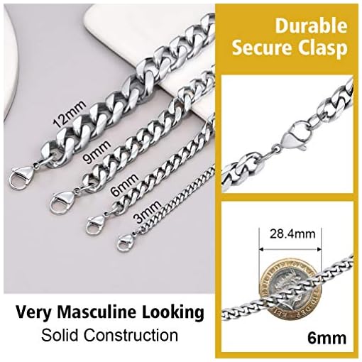 ⏭⏭Cuban Chain⏪⏪3/6/9/12mm width, 14/18/20/22/24/26/28/30 inches length . It’s thick, just enough, very comfortable, perfect in construction, quality of link and durability.