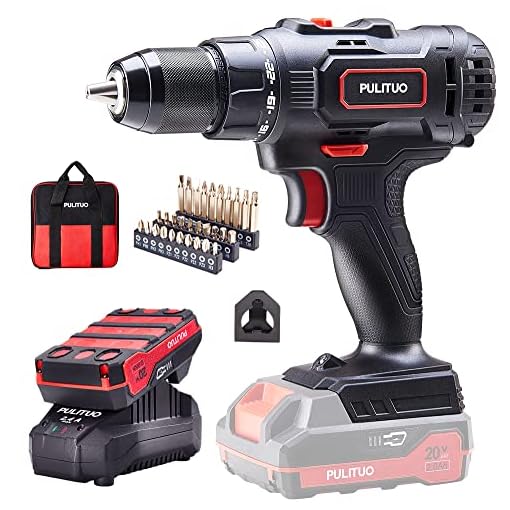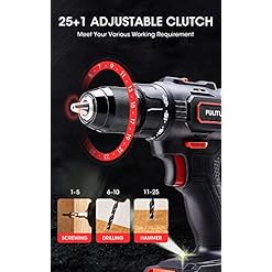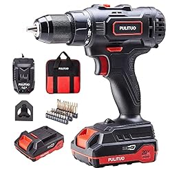 PULITUO Cordless Drill 20V, 2.0AH Battery Drill, 13mm All Metal Chuck, 45Nm Max, 25+1 Torque Adjustment, 2 Speeds,Led Light,Electric Drill with 50 Pcs