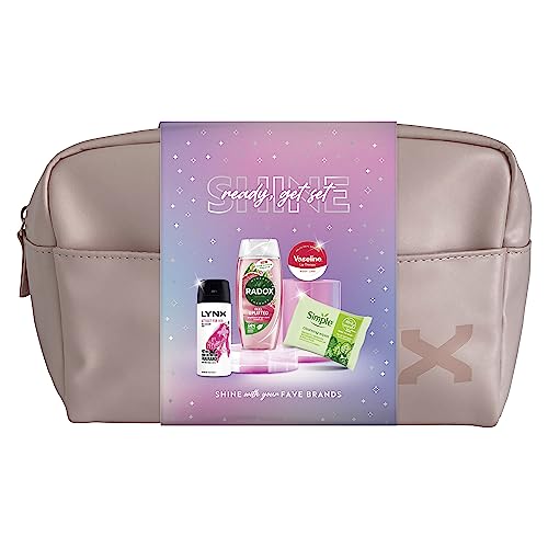 Ready Get Set Shine Deodorant Gift Set with RADOX Shower Gel, Simple Cleansing Wipes, Vaseline Lip Balm & LYNX Body Spray perfect gifts for her 4 piece