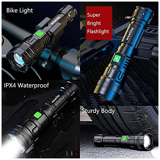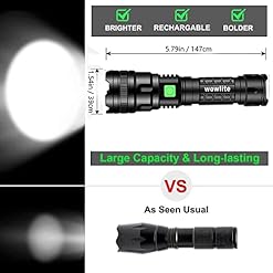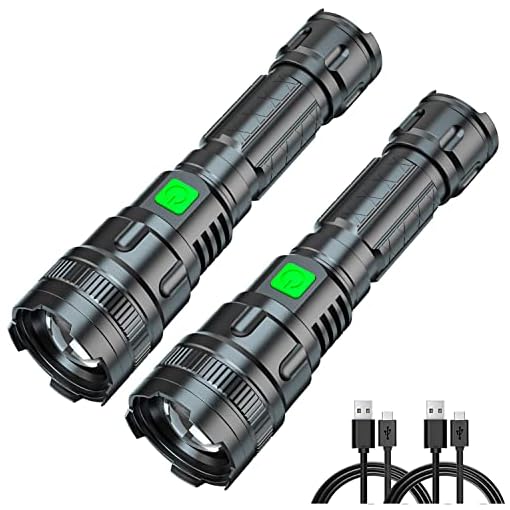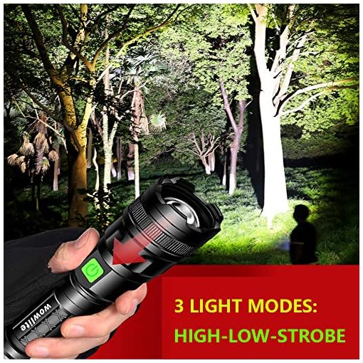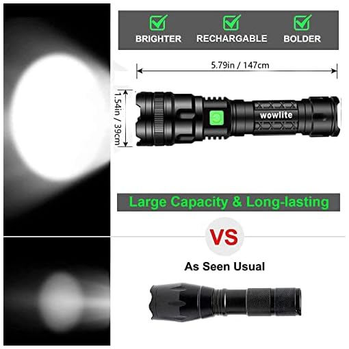 wowlite Rechargeable Torches Led Super Bright, Zoomable USB Torch Battery Powered Water Resistant, Tactical Flashlight with 3 Modes for Camping Hiking Emergency, 2Pack