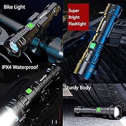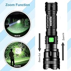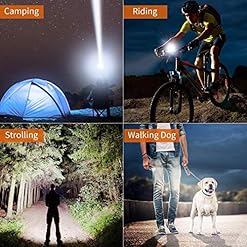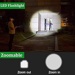 【BRIGHTEST FLASHLIGHT】 With high power XM-L T6 LED, the torch provides up to 1200 lumens(Max), it lights up an entire room easily or focus in on objects up to 1000 feet away! It is compact enough to fit in your pocket, backpack, or purse allowing for easy storage and quick access.