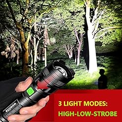 【ZOOMABLE & 3 MODES】 Simply rotating this torch in or out for a spotlight or as floodlight; It features only 3 light modes (High / Low / Strobe) which effectively reduces the trouble of switching 5 modes. All for the best user experience!
