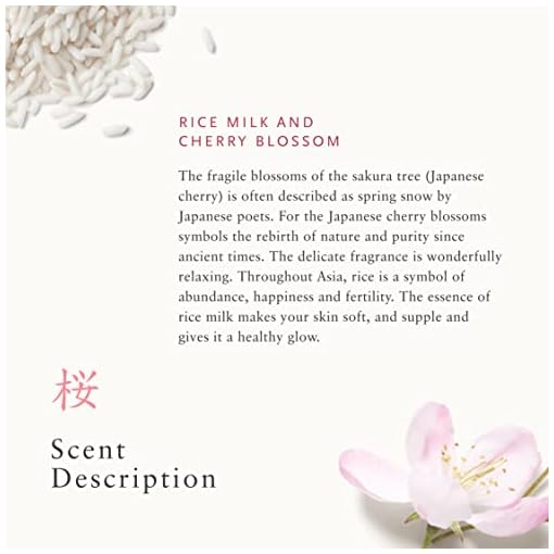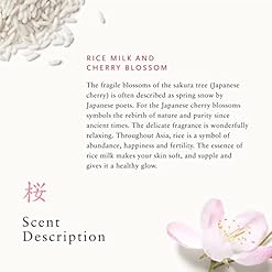 Delicate Fragrance: This beautifully scented bath set for women features the renewing, floral fragrance of Cherry Blossom and nourishing rice milk, to remind you of Spring and new beginnings