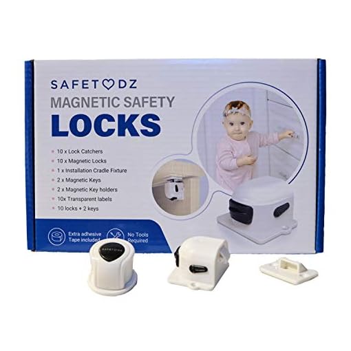 SAFETODZ 10 Magnetic Cabinet Locks with 2 Keys and Extra Adhesive Pads – Magnetic Baby Locks for Cabinets and Drawers – Strong Adhesive – No Tools Needed- Perfect for Child Proofing.