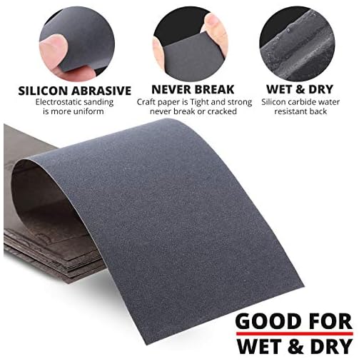Perfect Wet and Dry Duo: The premium quality wet and dry sanding paper are made of resilient synthetic abrasives for high grinding efficiency in wet and dry sanding to achieve the perfect glossy finish and shaping surfaces