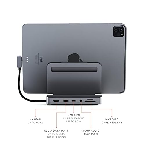 SATECHI Stand & Hub For iPad, USB-C Hub 6-in-1, Foldable Stand – 60W USB-C PD, 4K HDMI, USB-A Data Port, Micro/SD Card Readers, 3.5mm Audio Jack – For M2/ M1 iPad Pro, M1 iPad Air, iPad Mini