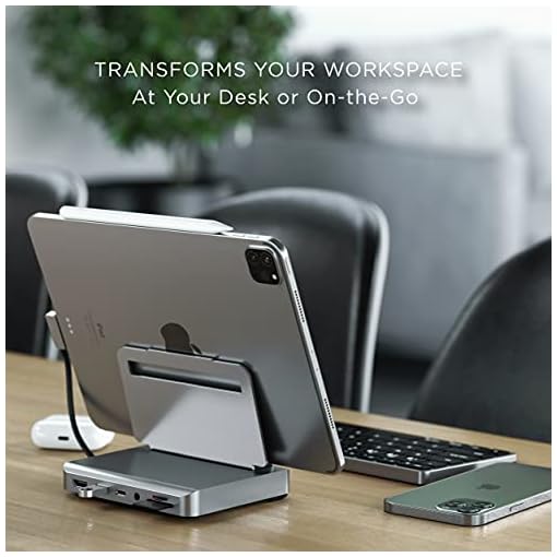 UPGRADE YOUR WORKSPACE – the Aluminum Stand & Hub’s 2-in-1 design transforms your iPad Pro (2018 & newer) or USB-C device into a fully functional workstation, whether you’re at your desk or on-the-go