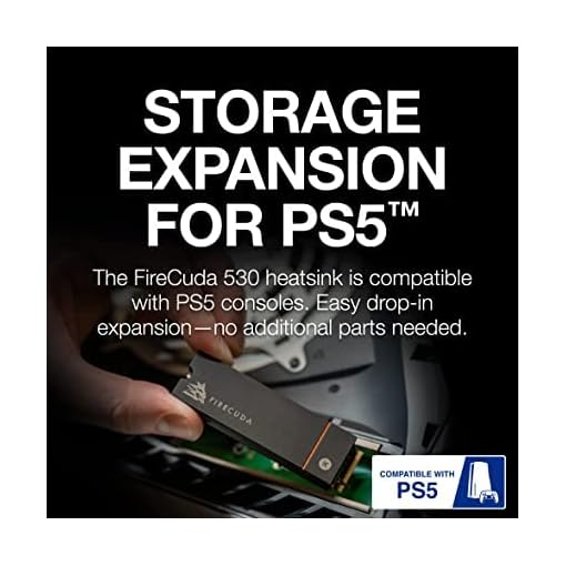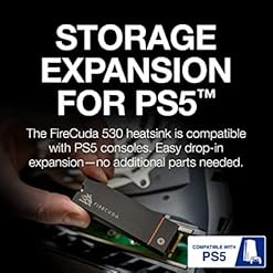 The FireCuda 530 with Heatsink is compatible with PS5 consoles. Easy drop-in expansion — no additional parts needed