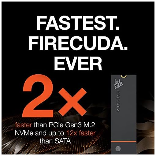 Our fastest FireCuda SSD ever built for the ultimate in sustained, pro-level gaming and accelerated content creation — with transfer speeds up to 2x faster than PCIe Gen3 M.2 NVMe SSDs and 12x faster than SATA SSDs