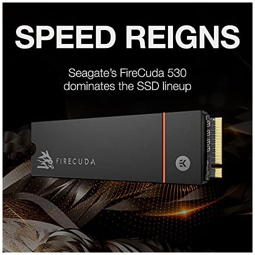 Seagate FireCuda 530, 1 TB, Internal Solid State Drive – M.2 PCIe Gen4 ×4 NVMe 1.4, transfer speeds up to 7300 MB/s, 3D TLC NAND, 1275 TBW, Heatsink, 3 year Rescue Services (ZP1000GM3A023)
