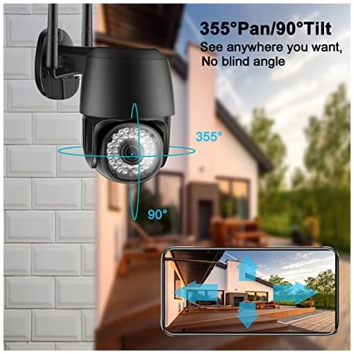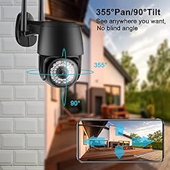 Security CCTV Camera Outdoor 2.4Ghz Wireless Network Wired Cameras with 355° Pan 90°Tilt Home Security WiFi Surveillance Camera, Auto Tracking , Two-way Audio, Color Night Vision with Motion Detection