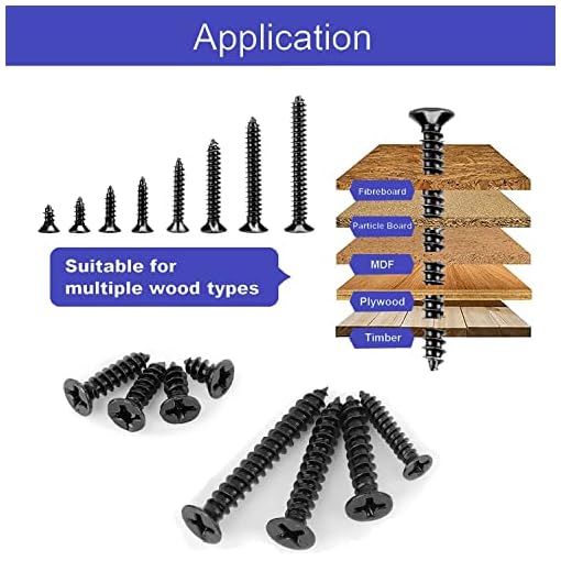 【USAGE】The quality of wood screws makes them ideal for all kinds of places,be it your home,office or workplace.Or when installing to dowels,small slats,plinths,frames,furniture,ceilings,etc.,the screw kit has a good tightening performance.Also suitable for general woodworking and DIY projects.