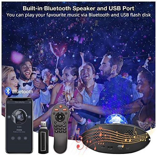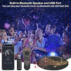 Built-in Speaker & USB Port: Easy to playing music via Bluetooth Speaker “SKE-YBX03” or USB flash disk. With music and nebula, the star projector will bring you a romantic and relaxing night. Updated Bluetooth chip allows for faster device recognition and connection.