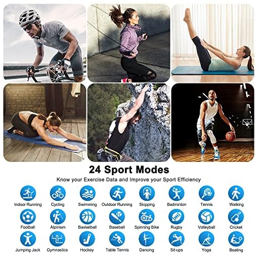 Mltifunction and Smart Notification: This smart watch includes more practical functions, fitness tracker (Pedometer, Calories, Distance), Stopwatch, Blood Pressure Monitor, Heart Rate Monitor, 24 Sports Modes, Sleep Monitor, Blood Oxygen Monitor, Call Notifications, SMS and APP Messages (WhatsAPP, Facebook, Messenger, Instagram…), Music & Camera Control, Brightness Adjustment, Weather Display, Sedentary Reminder, Gmail, Alarm Clock, Find Watch & Device.