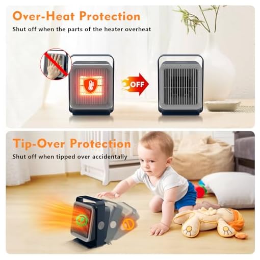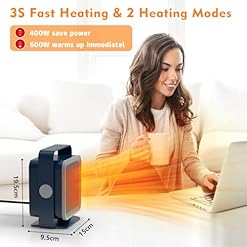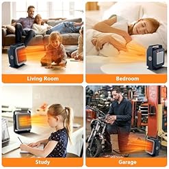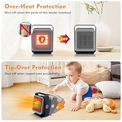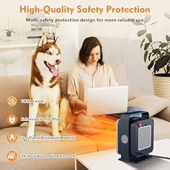 🔥🔥 Safe and Reliable: Our mini heater feature a multi-layer safety protection system made of abs flame retardant material with an automatic safety shut-off system that automatically shuts off the heater after 24 hours of continuous use. Overheat protection ensures that the space heater will automatically switch off if it gets too hot. If the unit is accidentally tipped over, it will automatically shut off, effectively preventing combustion, fire or any other safety incidents.