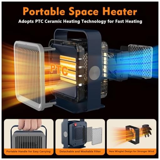 🔥🔥 Portable Carry Handle Design: Designed with a convenient handle, this mini portable heater warmer is compact and portable, allowing you to move around your home or office with ease and stay warm anytime, anywhere. Equipped with a 6ft cord, you can easily use it without an additional plug board.