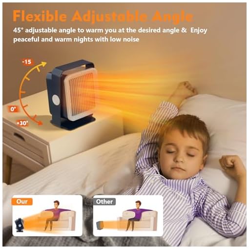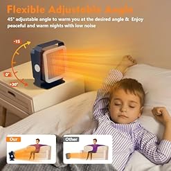 🔥🔥 Adjustable Angle & Low Noise: This office fan and heater for the bedroom has a 45° adjustable angle to keep you warm whether you are sitting or standing. Low noise transmission and even heating without disturbing your sleep or work, suitable for home, office, bedroom, and living room. Let your sleep and work undisturbed.