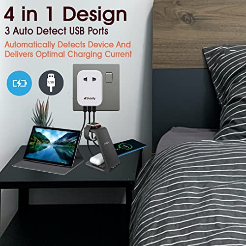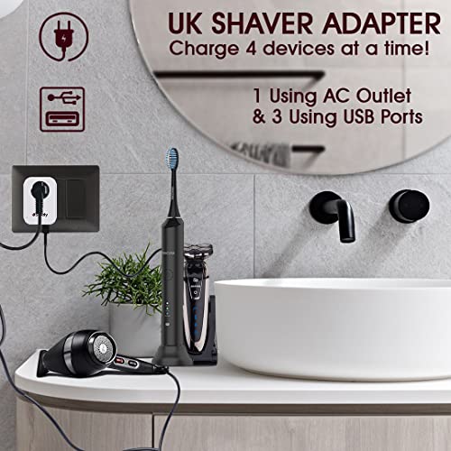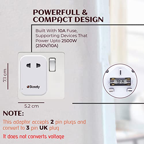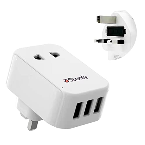 Staaly US/EU to UK Plug Adapter, 3 USB ports, 10A Fused, 2 Pin to 3 Pin Adapter Plug UK accept EU (Type C/E/F), US (Type A) & 2-pin British Bathroom Plug for Electric Shaver, Toothbrush & Razor