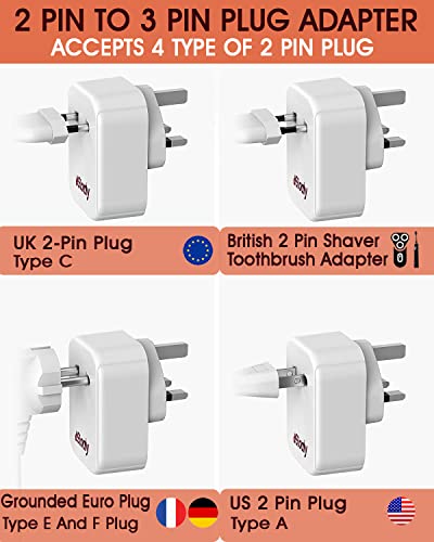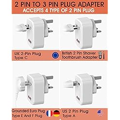 Wide Compatibility- This EU to UK Adapter Plug outlet accepts the standard 2 prong plug , European (Type C/E/F), US (Type A) Just insert in any UK plug socket, you can use majority of two-pin devices