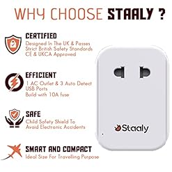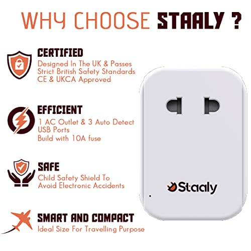 Note – Staaly USB Adapter Plug UK supports devices that work on 100-250V input, please check the rated input of your devices before use, especially hair dryer, curling irons, etc.