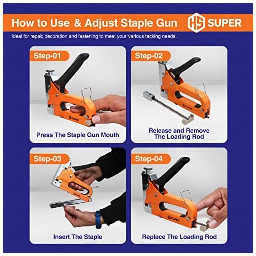 HS Super 3-in-1 Staple Gun Heavy Duty with 3000 Staples, Anti-Slip Uphosltery Staple Gun for Wood, Adjustable Force Quick-Jam Release Heavy Duty Stapler Gun, Heavy Duty Staple Gun for Uphosltery Work