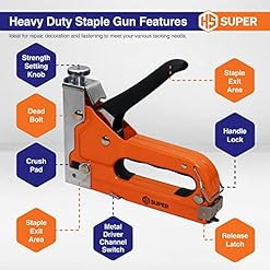 SMOOTH AND EASY – Ergonomically shaped and padded anti slip handle gives a fit and comfortable grip providing labor saving seamless operation. The strength setting knob can be easily toggled to adjust the driving force of the staples for different depths and types of surfaces.