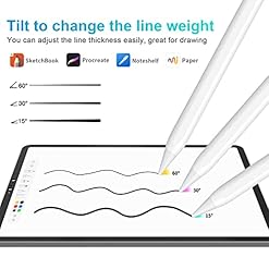 【Easy to Use and Extra Long Standby 】 Simple double-tap, and you can turn on the stylus pen for iPad easily. No need to install any app and doesn’t require any additional pairing process. It will auto sleep after idle for 5 mins to save time. 35 mins full charge, 10 hours continuous working, 365 days standby time. What you get: 1* Stylus Pen, 3* Extra replacement tips, 1* USB C Charge Cable, 24 Months worry-free warranty