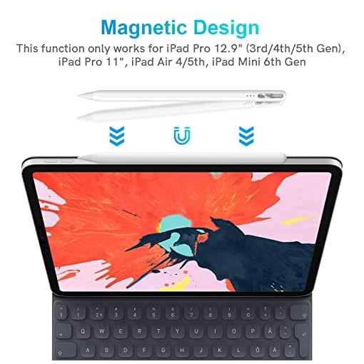 【Compatible Models】 The Stylus for iPad is specially designed for 2018—2022 Apple iPad series, Compatible with iPad Pro 11” 1st/2nd/3rd Gen, iPad Pro 12.9” 3rd/4th/5th Gen, iPad 6th/7th/8th/9th Gen, iPad Air 3rd/4th/5th Gen, iPad Mini 5th/6th Gen. Note: The Magnetic only for iPad Pro 12.9” 3th/4th/5th Gen, iPad Pro 11”, iPad Mini 6th Gen, iPad Air 4th/5th Gen