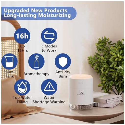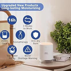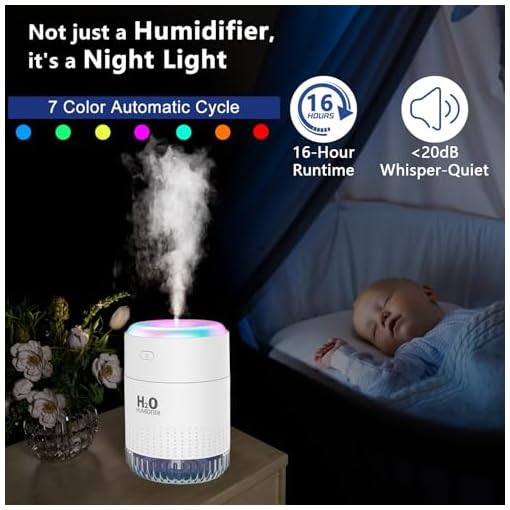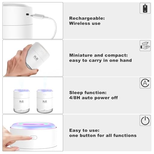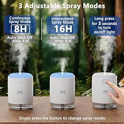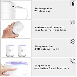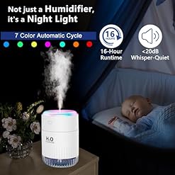 Colorful Portable Mini Humidifier: The compact and lightweight humidifier is designed for easy portability and has colorful vivid and tranquil atmosphere modes. It can be taken anywhere and is a very useful air humidifier and bedroom humidifier. Improve your sleep quality and work productivity