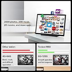 ✅【6GB RAM + 128GB ROM】TECLAST M40 Tablet equipped with 6GB running memory and 128GB high-speed storage, also support TF card to realize capacity expansion, so that you can use and download more popular software in fast conditions operation