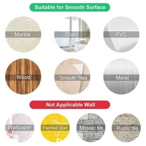 You can stick it on the smooth hard surface like ceramic tile, metal surface,glasses, etc.Not suitable for painted wall, wallpaper,drywall and rough surfaces,Otherwise it may damage the wall.