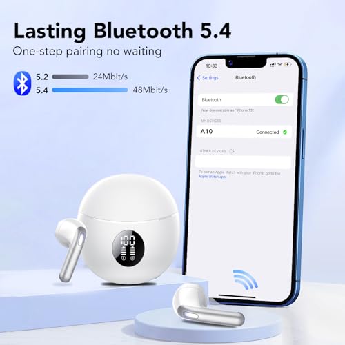 TIMU Wireless Earbuds, Bluetooth 5.4 Headphones in Ear, 2025 New Bluetooth Earphones with 4 ENC Noise Cancelling Mic