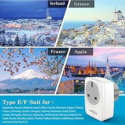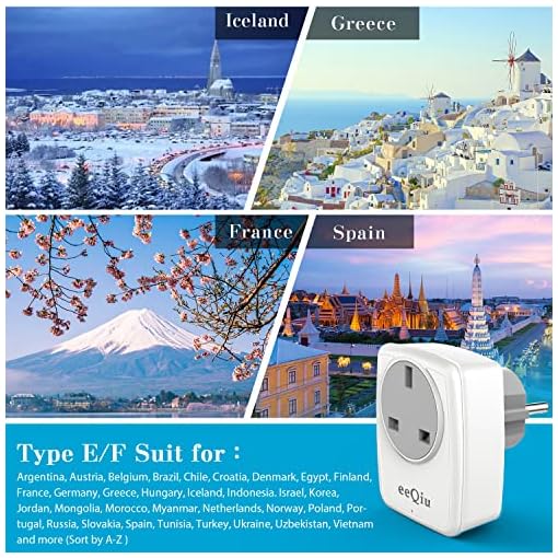 ✔. European Travel Plug Adaptor- Converts UK 3-pin socket Type-G Into a Standard Schuko European 2-pin Plug Type-E & F. Works in most European countries such as Germany, France, Iceland, Netherlands, Norway, Poland, Portugal, Russia, Spain etc.