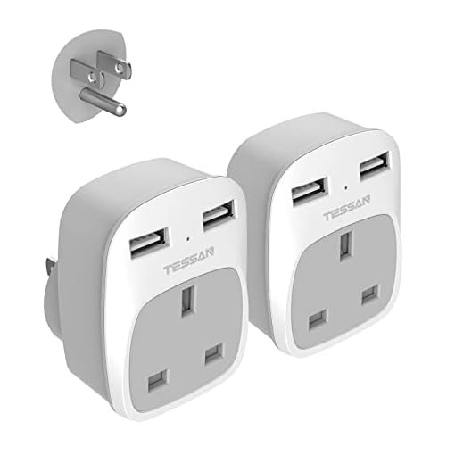 TESSAN UK to US Plug Adapter with 2 USB, 2 Pack, American Plug Adapter, 3 in 1 US Travel Adapter from UK to USA, Canada, Thailand, Mexico, Colombia etc. (Type B)