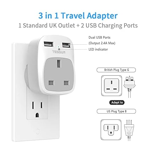 3 in 1 Travel Adapter – This US Adapter travel from UK extends a US Adapter (Type B ) to 2 USB charging ports and 1 UK plug adaptor, allowing you to plug in 3 electrical devices simultaneously. Dual USB charges up to 2.4A/5V, ideal for electric products like Smartphone, Tablet, Power Bank and other electric devices
