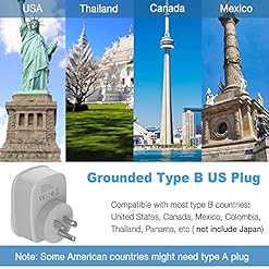 Compatible Countries – US Adapter from UK to USA, Canada, Mexico, Thailand, Colombia, American Samoa, Antigua and Barbuda, Aruba, Bahamas, Barbados, Belize, Bermuda, Kaiman Islands, Costa Rica, Cuba, Dominican, Ecuador, El Salvador, Guam, Guatem. ala, Guyana, Haiti, Honduras, Jamaica, Jordan, Laos, Libanon, Nicaragua, Niger, Palau, Panama, Peru, Philippines, Taiwan etc. (not for Japan)