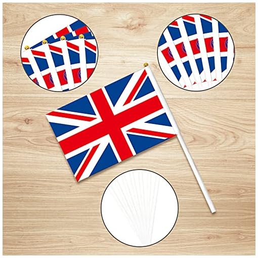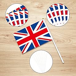 Union Jack Flag : The Hand Held Flags With Spear Stick Flag pattern printed on both sides,you can show other people one side of the flag, saving you a lot of time.Make your party unforgettable with this perfect decoration.