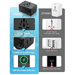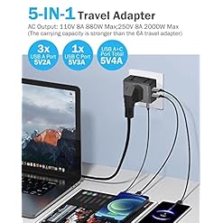 [5 in 1 Travel Adapter] The universal Travel Adapter can charge and power up to 5 devices at the same time! With 3 USB-A ports + 1 AC device, it can fast charge your multiple devices (such as cameras, mobile phones, watches and other devices) at the same time. The USB port with built-in IC detects your multiple devices and provides the fastest charging speed, thus saving more time when you travel, at home, in the office and more.