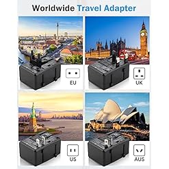 Universal Travel Adapter with USB C Port, 5-in-1 Worldwide Travel Adapter International with 3 USB-A Ports, Multi Travel Power Adapters Plug All-In-One Converter Plug for European UK/EU/US/AUS