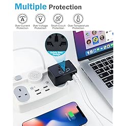 [Multi-Safety Design] The universal plug adaptor is made of high quality ABS and PC fire resistant materials and has built-in robust internal hardware to prevent electric shock. The worldwide travel adapter with RoHs, CE and other approvals has a smart IC chip with surge protection to ensure that you and your device are fully protected and safety equipment for child protection.