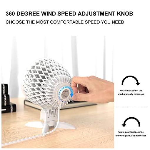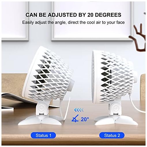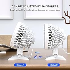 👍【Angle Adjustable & Easy to Clean】The personal fan used humanized adjustable head design, which supports 20 degree angle adjustable, just choose the angle you feel comfortable with. Detachable design, rotate counterclockwise to remove the front cover, easy to clean the cover and the blade.