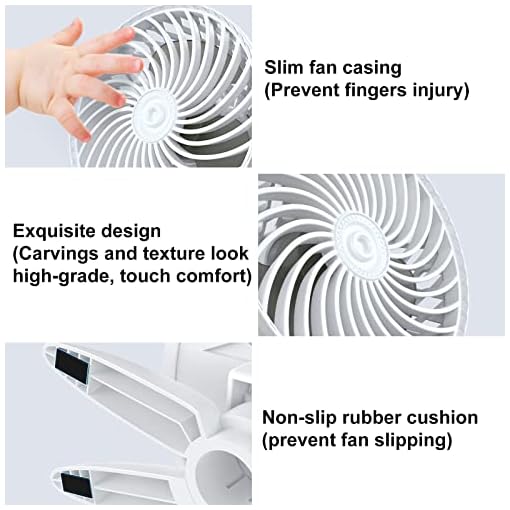 👍【Sturdy Base & Quality Guarantee】The USB fan designed non-slip rubbers on the bottom of four crossed feet help reduce vibration and increase friction, which keep the fan firmly in place to ensure airflow is being directed to the desired location and doesn’t slip over when working even at the high speed. We provide worry-free 12-month warranty, and friendly customer service.