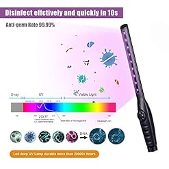 【Efficient Sterilization】:Superior UV-C LED lights with a wavelength of 270–280 nm has a stronger function than UV-A and UV-B, Unlike other devices that emit ozone and contain mercury,this sanitizer wand is powered by 9 premium UV-C LEDs and destroys the molecular structure of DNA or RNA in viruses with no harmful chemicals whatsoever!